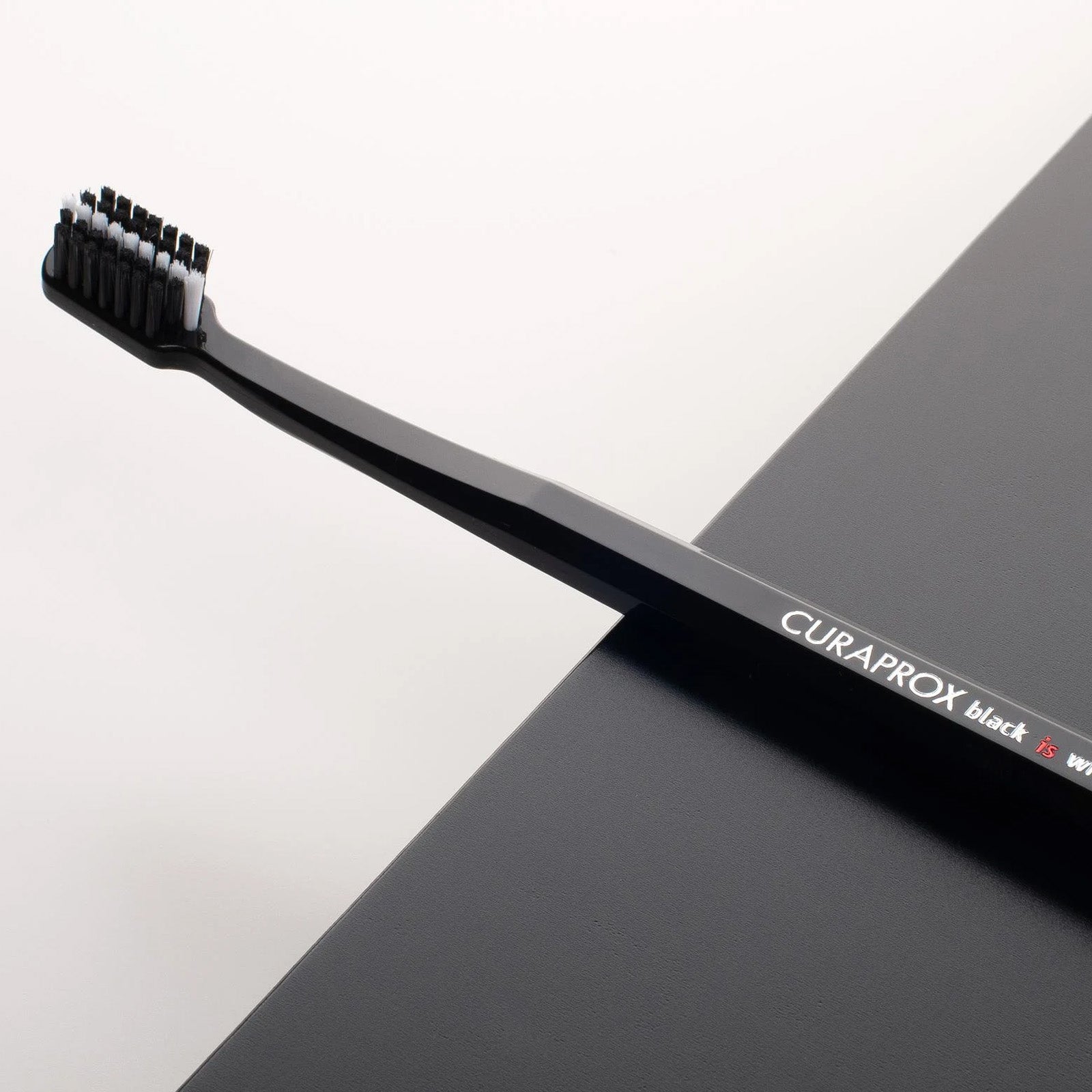 Curaprox Black is white ultra soft toothbrushes offer a stylish and gentle solution for daily oral care. This twin pack includes two toothbrushes designed for effective plaque removal while protecting enamel and gums. Their sleek black design combines aesthetics with high-performance Swiss oral care. Each brush head contains 5,100 ultra-fine Curen® filaments, just 0.1 mm in diameter. These densely packed filaments provide thorough cleaning without causing abrasion.