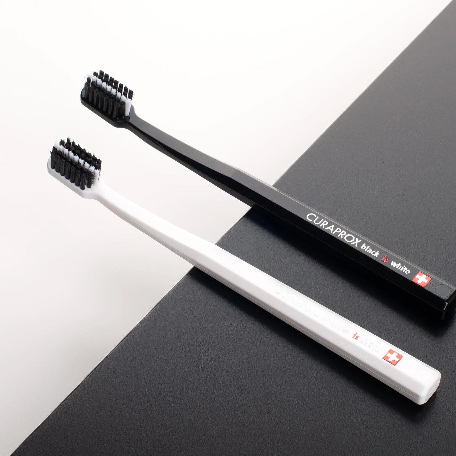 Curaprox Black is white ultra soft toothbrushes offer a stylish and gentle solution for daily oral care. This twin pack includes two toothbrushes designed for effective plaque removal while protecting enamel and gums. Their sleek black design combines aesthetics with high-performance Swiss oral care. Each brush head contains 5,100 ultra-fine Curen® filaments, just 0.1 mm in diameter.