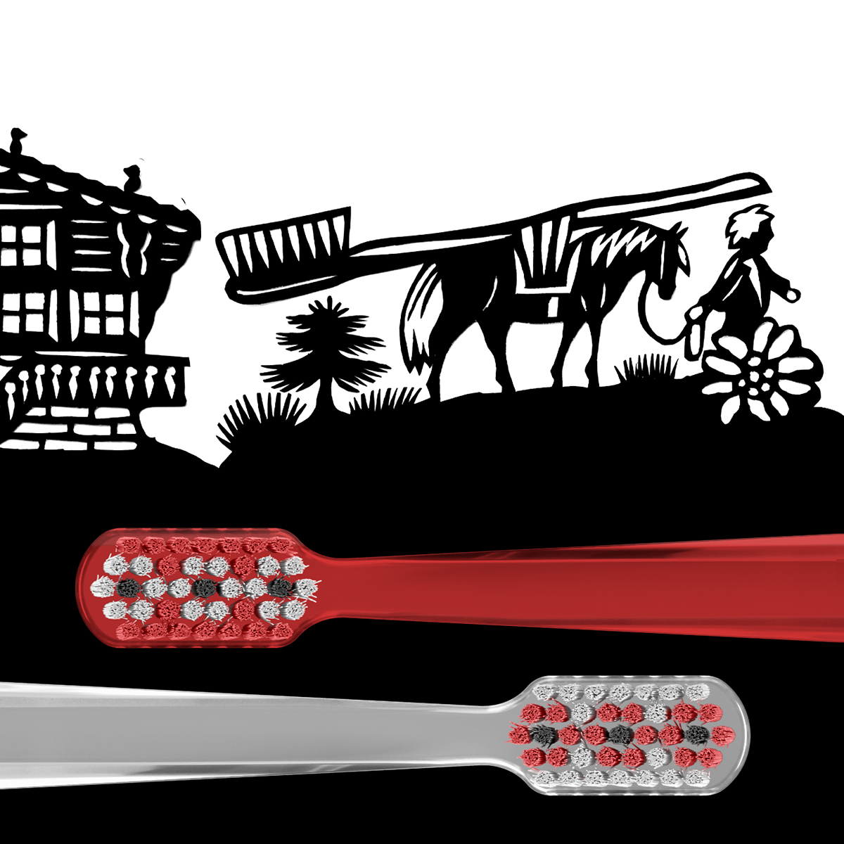The Swiss edition is a special edition of the Curaprox CS 5460 ultra-soft toothbrushes celebrating Swiss paper cutting art and its scenic Alpine countryside. The design was made in collaboration with a Swiss paper cut artist Regina Martin based on traditional 19C depictions of Swiss countryside by Johann Jakob Hauswirth. The new edition was meant to bring the Alpine freshness to every day brushing rituals.