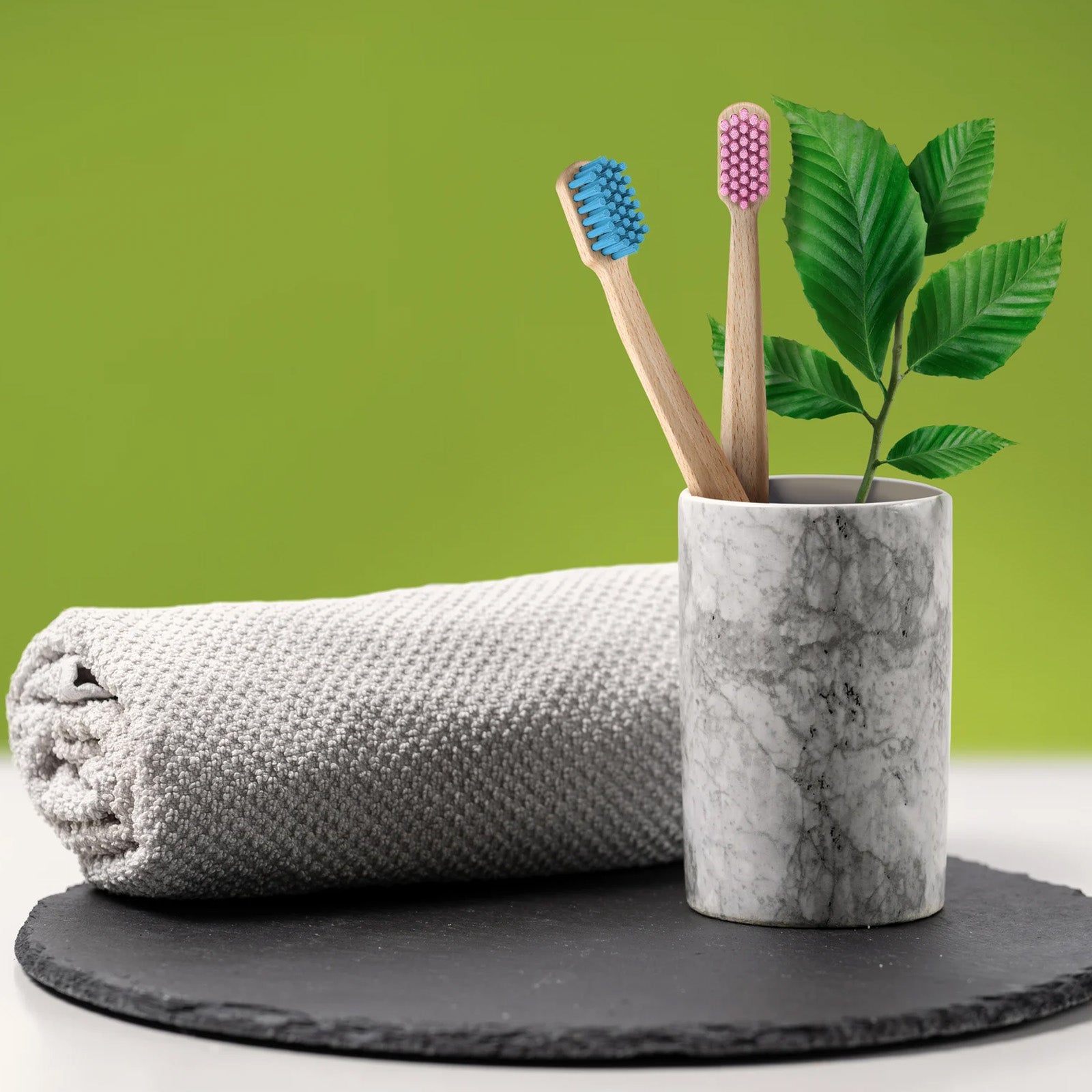 Try this toothbrush… love this toothbrush. Feel connected with nature every morning and every evening. With the beautiful, earthy warmth of the biodegradable, compostable handle and the joyful color of the brush head filaments – this is a work of art you could lovingly gift to family and friends.