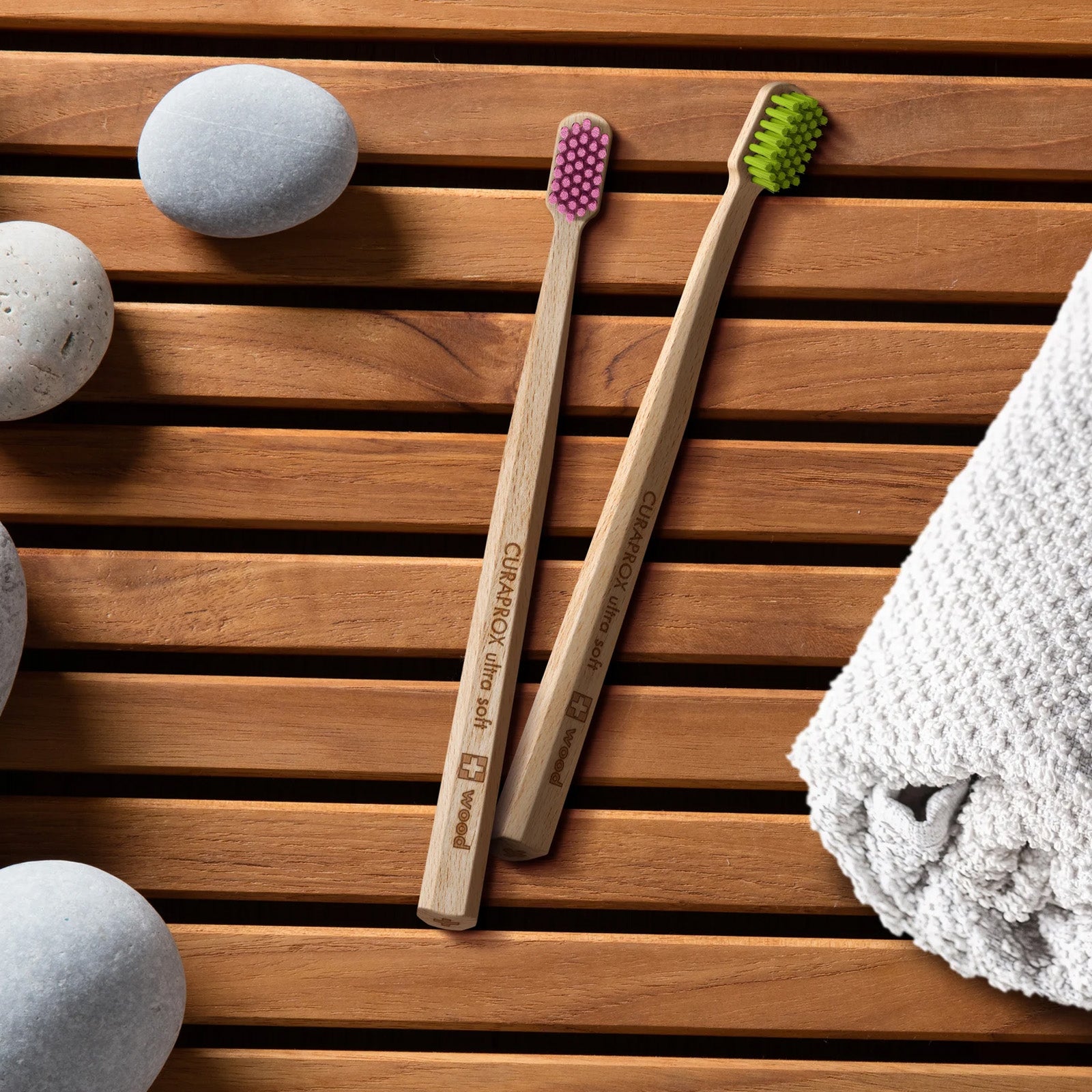 This is the same groundbreaking technology and design excellence used in all our iconic toothbrushes – recommended by dentists and loved by millions. Wooden no longer means less efficient. The Curaprox wood ultra soft is relentless on plaque… and relentlessly gentle on your teeth and gums. Brush for a smile that lasts a lifetime. Swiss beech is known for its durability. And it's the only wooden toothbrush with the Curacurve® bend – so you can easily get to all those hard-to-reach spots. The wooden toothbrush that cares for your smile and the environment.